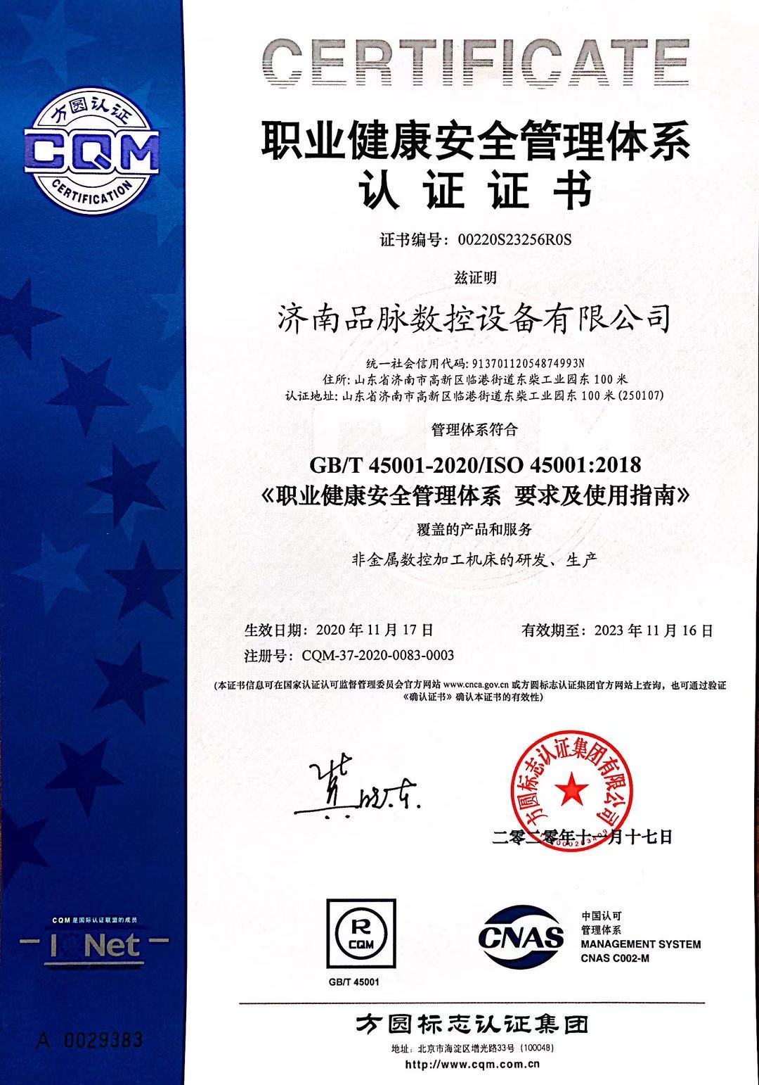 同時(shí)濟(jì)南品脈數(shù)控設(shè)備有限公司還獲得了其他的一些相關(guān)資質(zhì)。