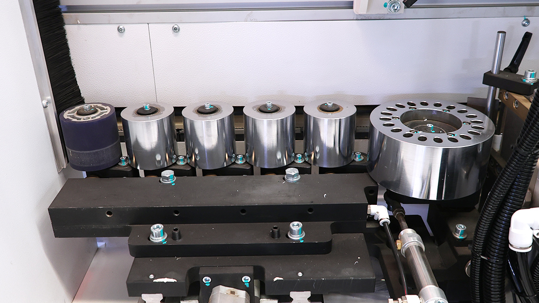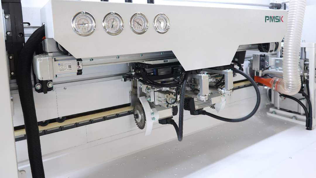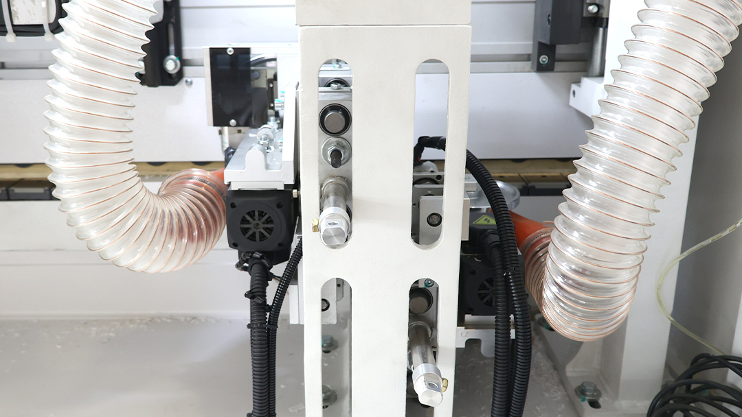 The servo edge scraping mechanism can automatically adjust its position according to the thickness of the edge banding tape to achieve perfect edge trimming.